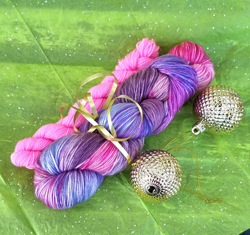 A full skein of 4 ply sock yarn and a coordinating mini skein