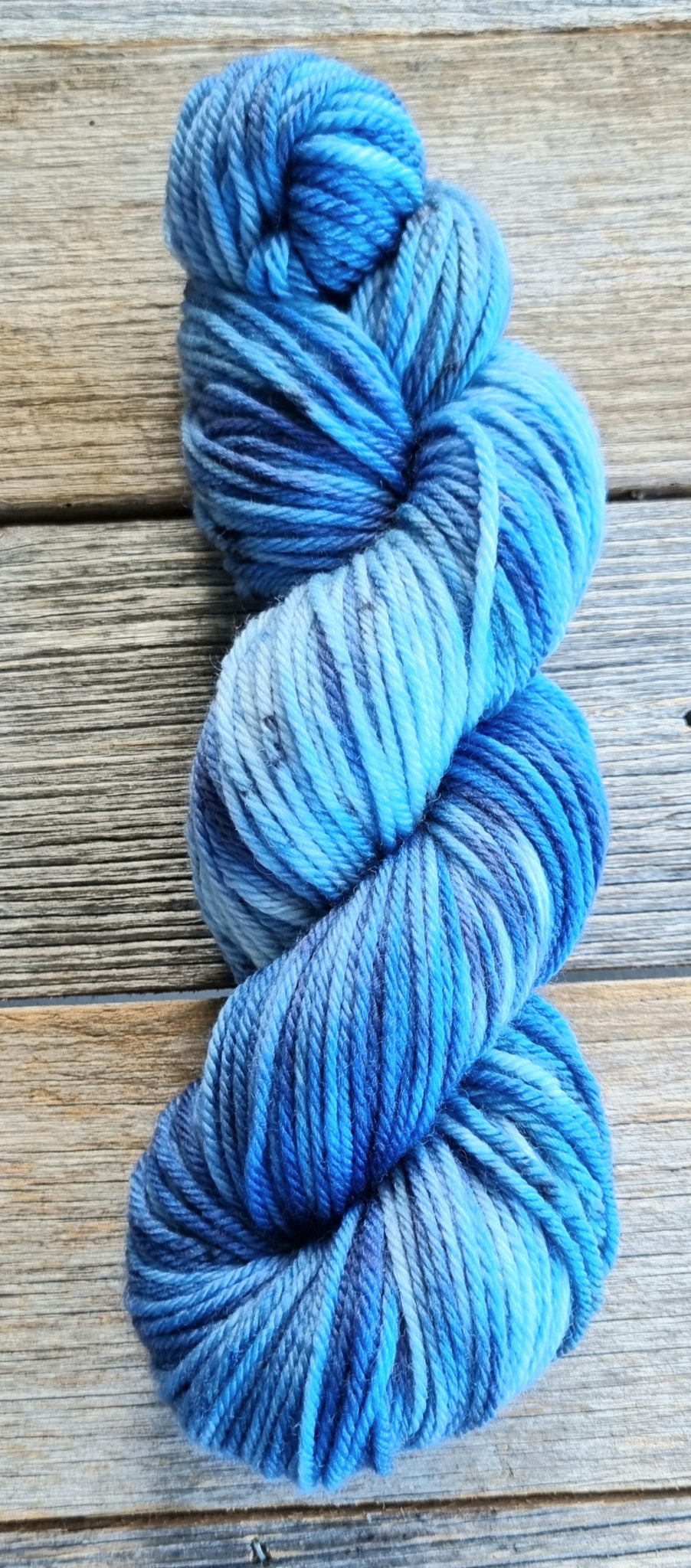 Shipstern Bluff is a variegated mid and light blues with some grey speckles.